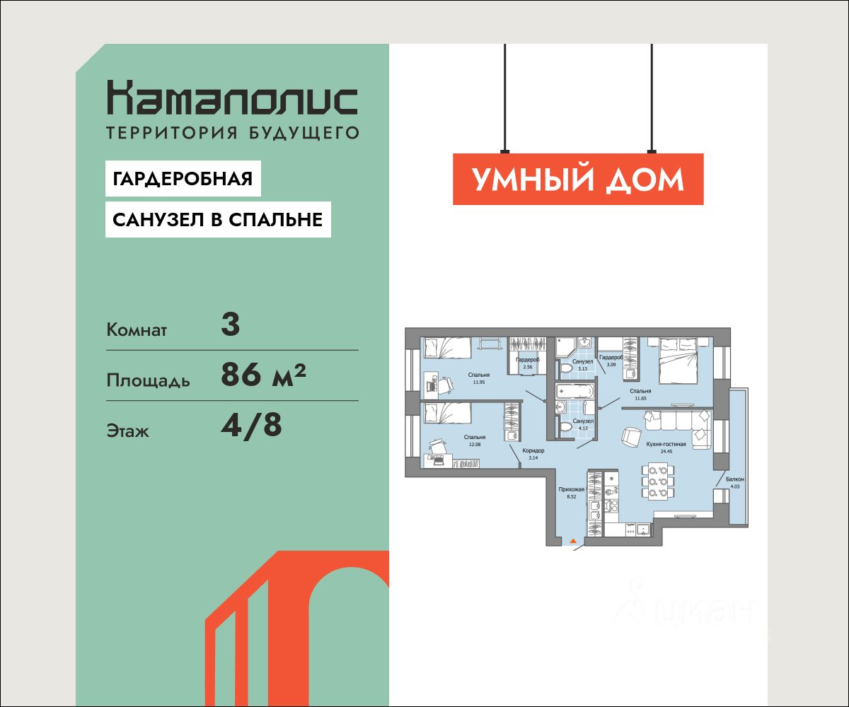 86 м² · Этаж 4 из 8