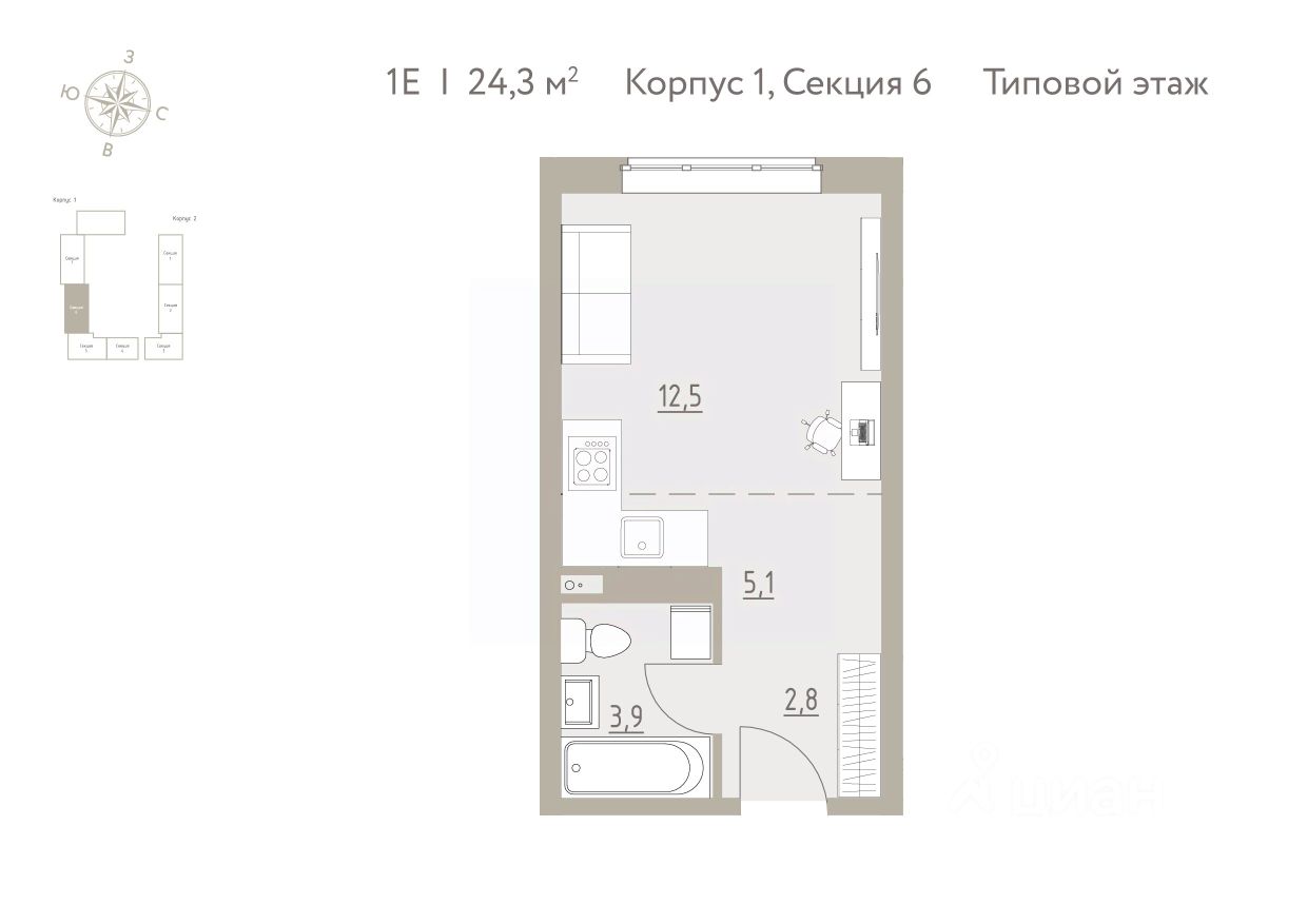 24 м² · Этаж 4 из 4