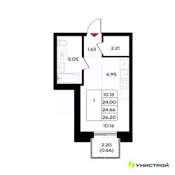 Студия 29 м² — идеальный старт для самостоятельной жизни или инвестиции. Грамотная планировка с нишами под шкаф-купе и кухонный гарнитур — легко зонировать пространство и избежать визуального шума,Просторная ванная 5,5 м² — комфорт, которого редко ждёшь от студии,В прихожей предусмотрена ниша под шкаф — порядок с первых шагов в квартиру,Большое окно с низким подоконником (всего 40 см от пола) наполняет квартиру светом и делают вид частью интерьера, Потолки 2,7 м — воздух, объем и ощущение свободы.