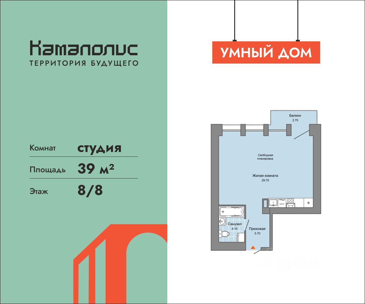 39 м² · Этаж 8 из 8