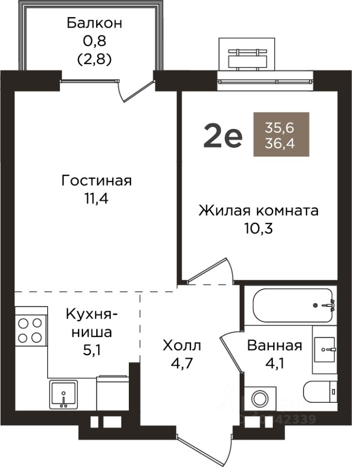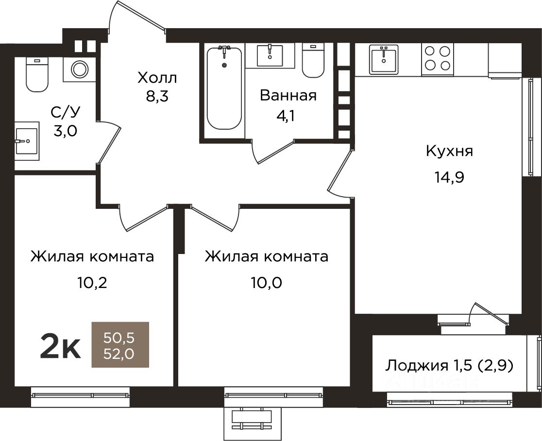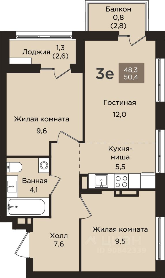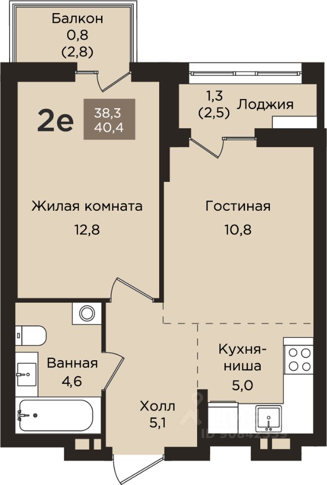 2-к, Танцорова, 96 корп. 1 Показать на карте