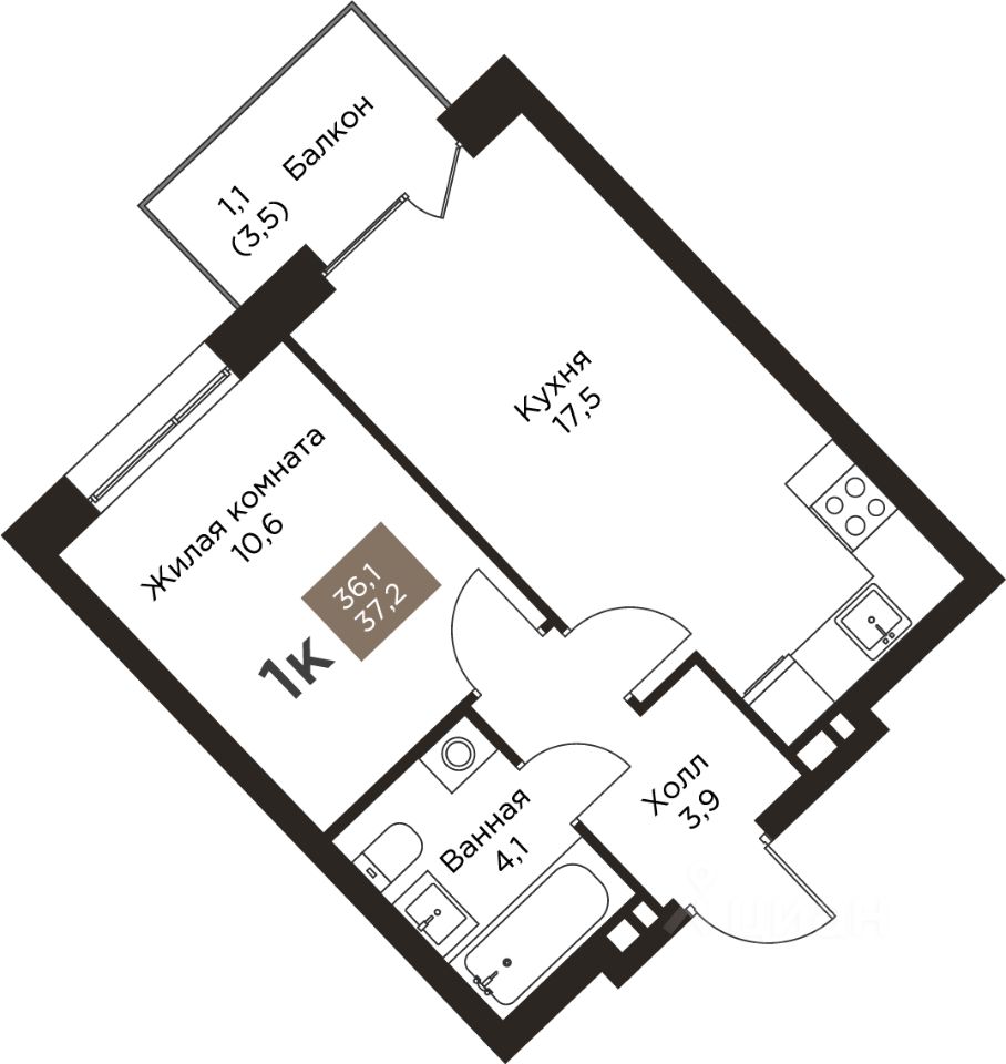 37 м² · Этаж 4 из 9