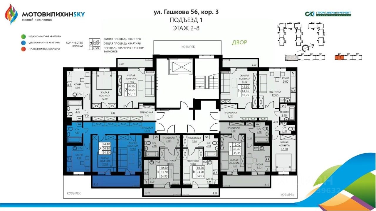 3-к, Гашкова, 56 корп. 2