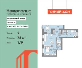 В новом жилом комплексе комфорт+ класса ''Камаполис'', расположенном на берегу реки Камы, продается 2-комнатная квартира площадью 78.00 кв. м. Квартира находится в 5 (1 этап) доме. Девелопер проекта - ''Железно''.Транспортная доступность• Трамвайная остановка всего в 3 минутах пешком,• 15 минут ходьбы до вокзала Пермь-2,• 10 минут на машине до центра города.Продуманный архитектурный проектКамаполис - это жизнь в соразмерной среде, спроектированной известными архитекторами. Жилые этажи ''Камаполиса'' строят из кирпича и по монолитной технологии, стены обладают высокой устойчивостью к нагрузкам, огнестойкостью, хорошей шумоизоляцией. Такие дома отлично сохраняют первоначальный внешний вид и радуют жителей долгие годы.Концептуальные лоббиКонцепция проекта продолжается интерьером лобби. Здесь преобладают естественные оттенки и текстуры, а мебель выполнена из экологичных материалов. Для удобства жителей созданы собственные колясочные и велосипедные, а для заботы о домашних любимцах предусмотрена лапомойка.Благоустройство Новый центр притяжения - всесезонный сквер, выполненный в тематике и стилистике пермского периода. Прогулочные зоны, игровые и спортивные площадки, релакс-зоны и места для творчества - все эти мультифункциональные пространства формируют сценарии для любого досуга. Любители особой приватности оценят соседские террасы - это специальные пространства для жителей, расположенные прямо на стилобате паркинга. Любуйтесь на реку, принимайте участие в совместных мероприятиях с соседями, с удовольствием работайте на свежем воздухе и приятно проводите время с близкими. Дополнительные преимущества• Собственный детский сад на 320 мест,• Стрит-ритейл с магазинами и кафе прямо на территории комплекса,• Управление домом через собственное мобильное приложение ''Мажордом'',• 3 разных вида отделки на выбор покупателей.