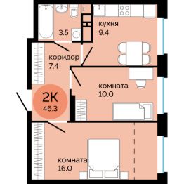 2-к, Яблочкова, 5 корп. 4 Показать на карте