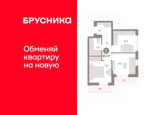 2-к, Космонавта Беляева, 54а Показать на карте