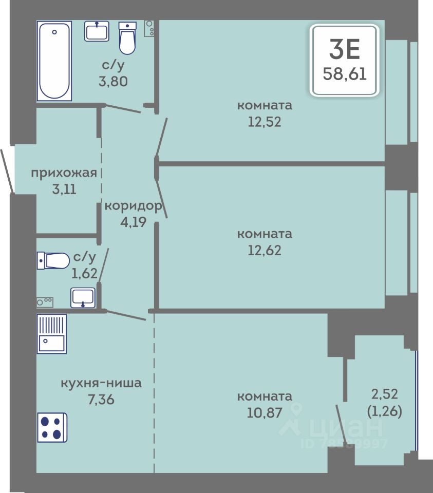 58 м² · Этаж 4 из 4