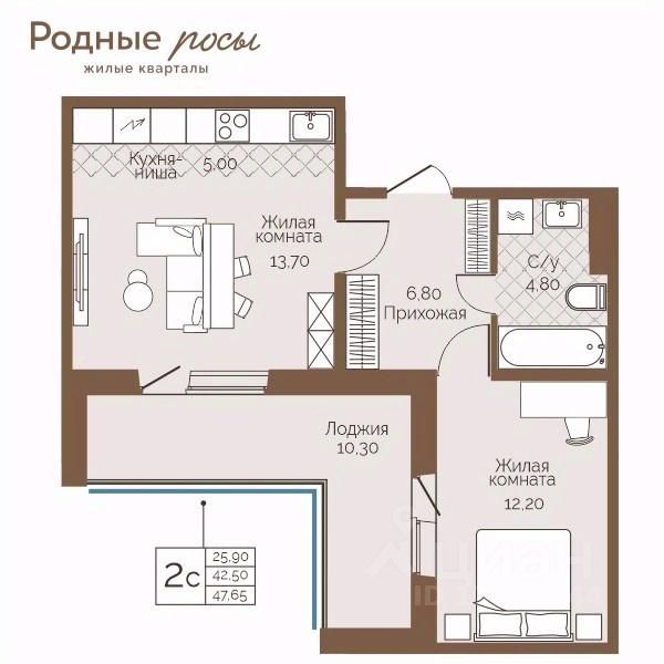 Продаётся 2-комнатная квартира в строящемся доме (Академическая, 9), срок сдачи: III-кв. 2027, общей площадью 47.65 кв.м., на 3 этаже. Новый жилой комплекс ''Родные росы'' от Специализированного застройщика ''Финпроект'' расположен в с. Фролы по ул. Академическая.