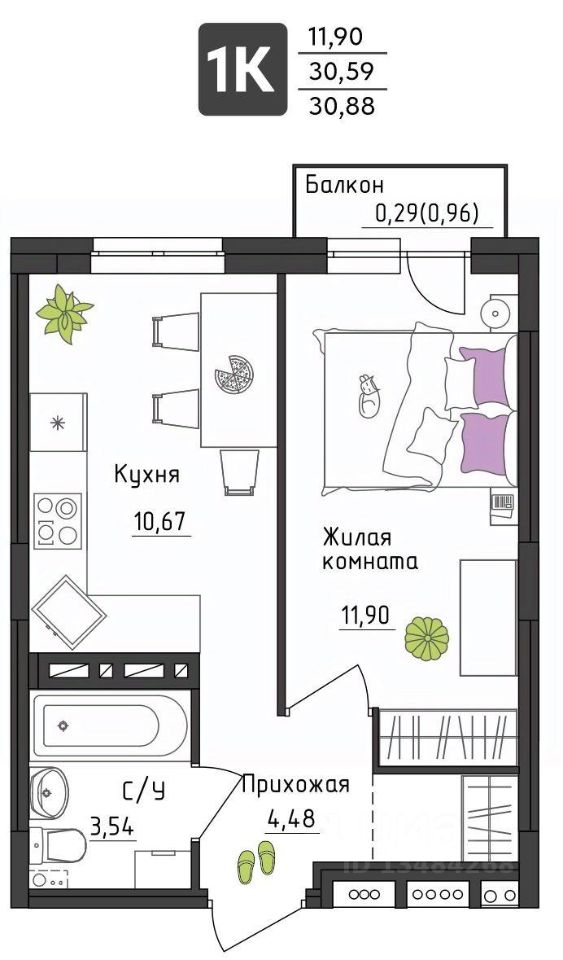31 м² · Этаж 21 из 30