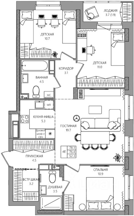 52 м² · Этаж 8 из 9