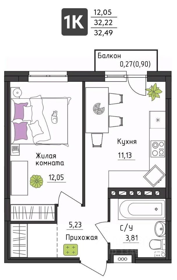 32 м² · Этаж 3 из 4