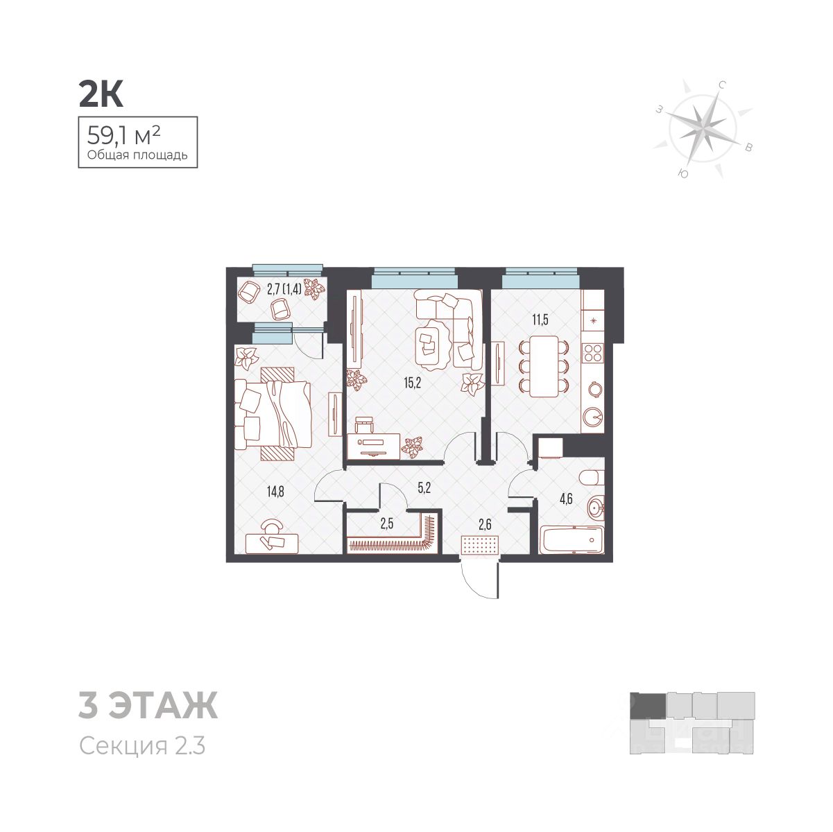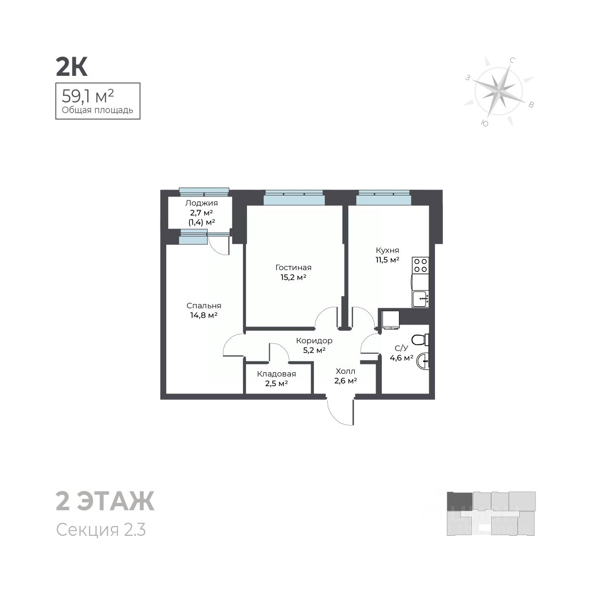 59 м² · Этаж 2 из 7