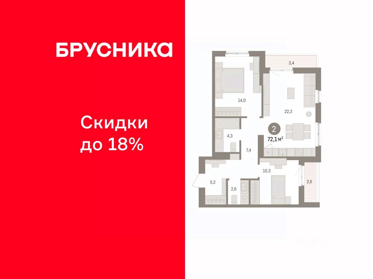 72 м² · Этаж 14 из 16