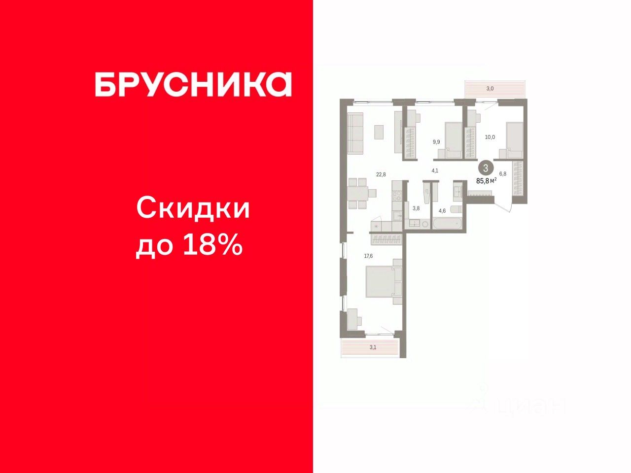 46 м² · Этаж 9 из 10
