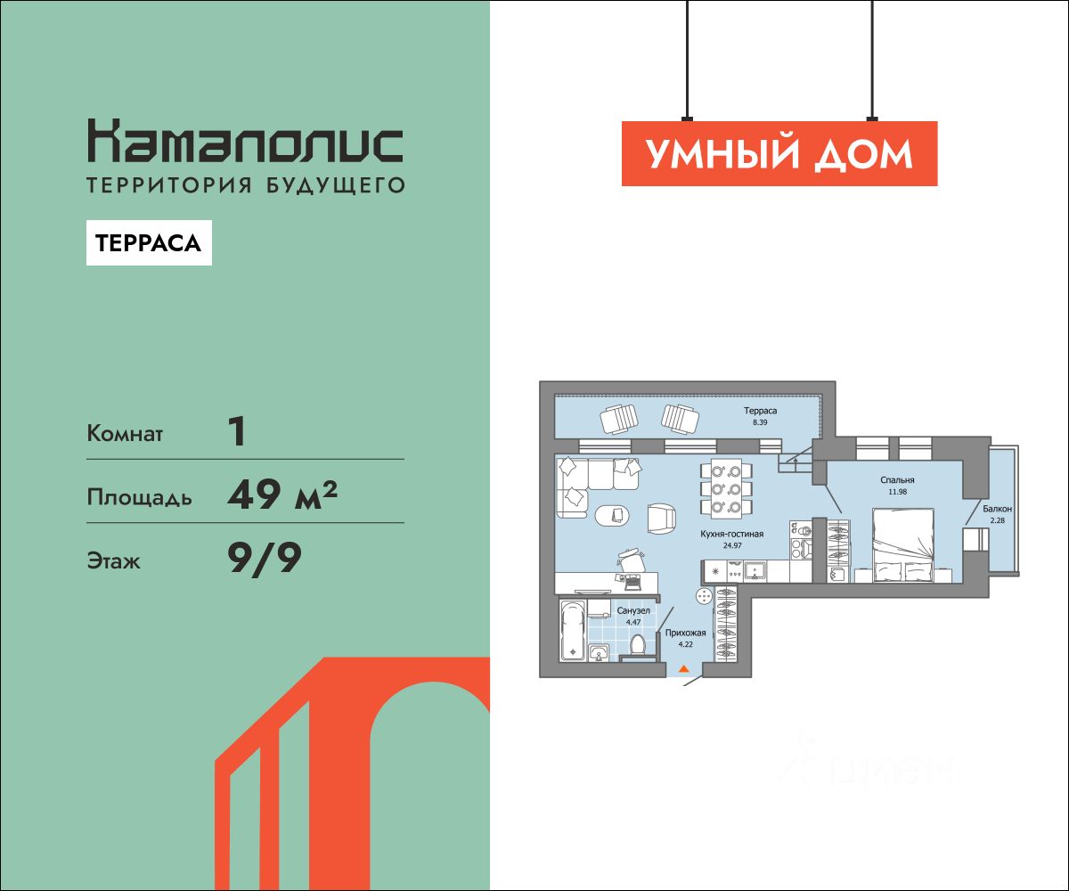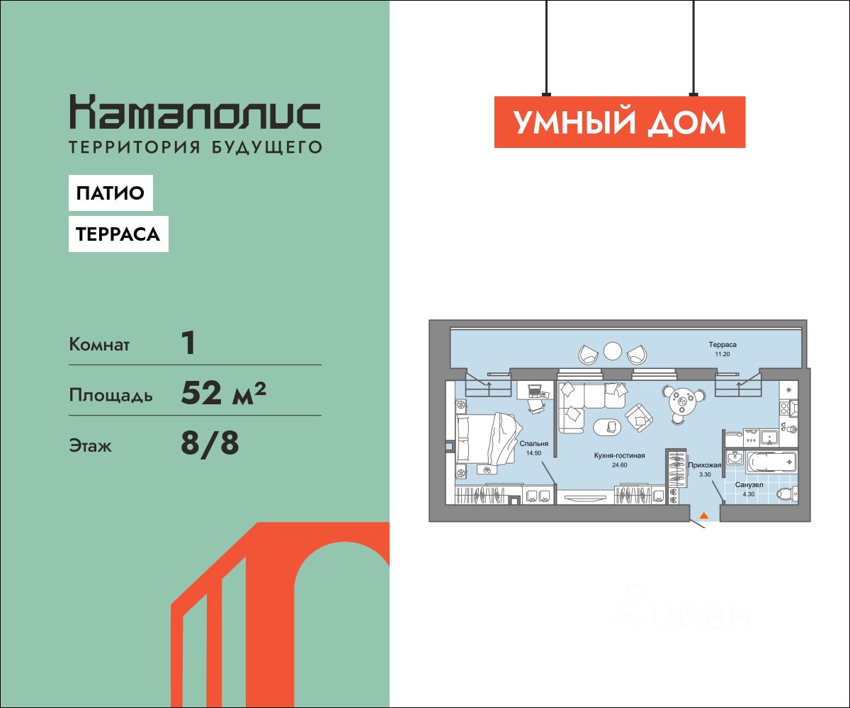 В новом жилом комплексе комфорт+ класса ''Камаполис'', расположенном на берегу реки Камы, продается 1-комнатная квартира площадью 32.00 кв. м. Квартира находится в 5 (1 этап) доме. Девелопер проекта - ''Железно''. Транспортная доступность • Трамвайная остановка всего в 3 минутах пешком, • 15 минут ходьбы до вокзала Пермь-2, • 10 минут на машине до центра города. Продуманный архитектурный проект Камаполис - это жизнь в соразмерной среде, спроектированной известными архитекторами. Жилые этажи ''Камаполиса'' строят из кирпича и по монолитной технологии, стены обладают высокой устойчивостью к нагрузкам, огнестойкостью, хорошей шумоизоляцией. Такие дома отлично сохраняют первоначальный внешний вид и радуют жителей долгие годы. Концептуальные лобби Концепция проекта продолжается интерьером лобби. Здесь преобладают естественные оттенки и текстуры, а мебель выполнена из экологичных материалов. Для удобства жителей созданы собственные колясочные и велосипедные, а для заботы о домашних любимцах предусмотрена лапомойка. Благоустройство Новый центр притяжения - всесезонный сквер, выполненный в тематике и стилистике пермского периода. Прогулочные зоны, игровые и спортивные площадки, релакс-зоны и места для творчества - все эти мультифункциональные пространства формируют сценарии для любого досуга. Любители особой приватности оценят соседские террасы - это специальные пространства для жителей, расположенные прямо на стилобате паркинга. Любуйтесь на реку, принимайте участие в совместных мероприятиях с соседями, с удовольствием работайте на свежем воздухе и приятно проводите время с близкими. Дополнительные преимущества • Собственный детский сад на 320 мест, • Стрит-ритейл с магазинами и кафе прямо на территории комплекса, • Управление домом через собственное мобильное приложение ''Мажордом'', • 3 разных вида отделки на выбор покупателей.