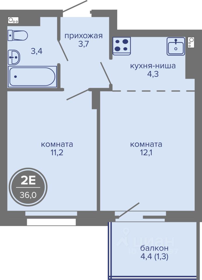 21 м² · Этаж 2 из 4