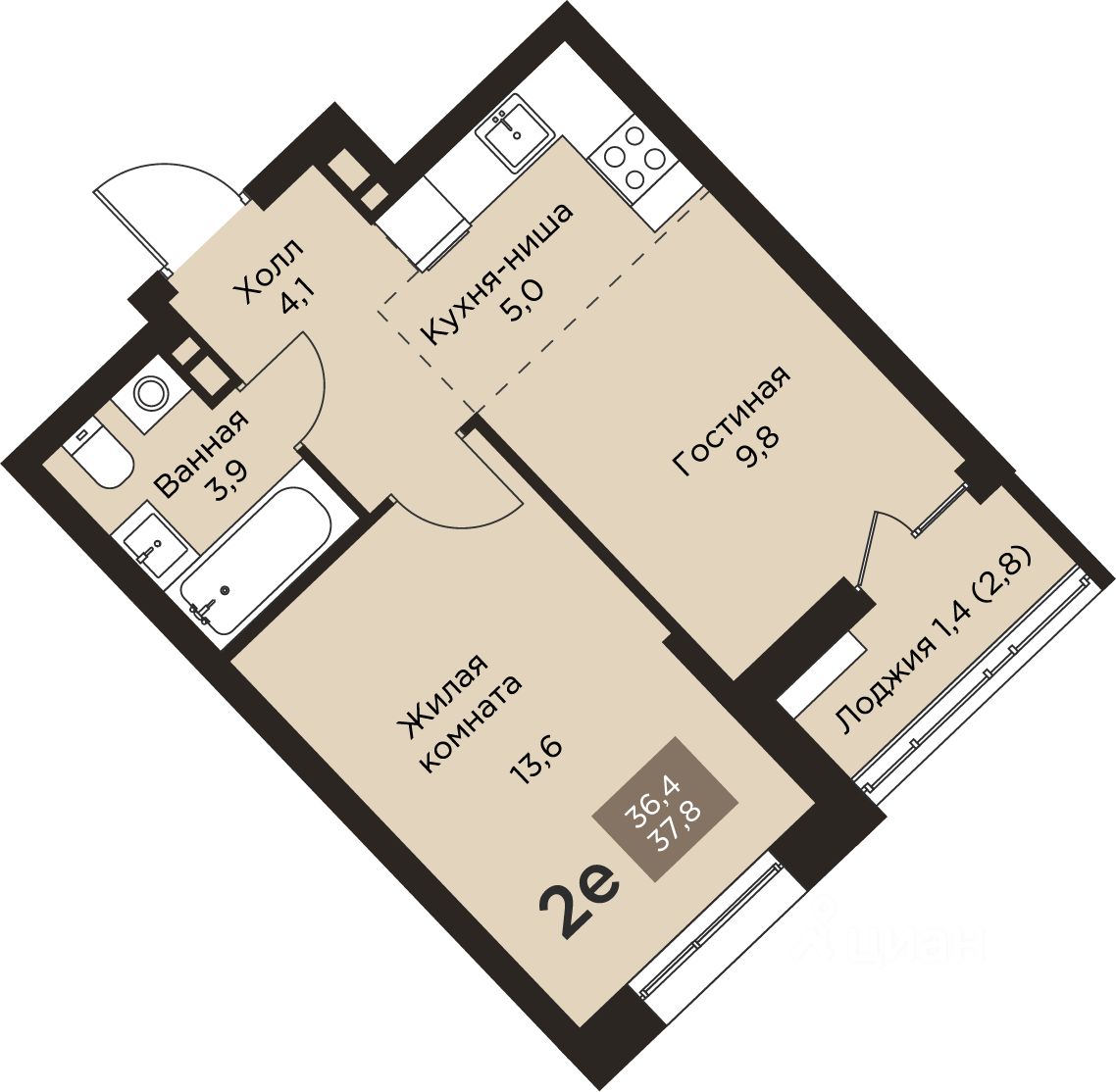 38 м² · Этаж 8 из 9