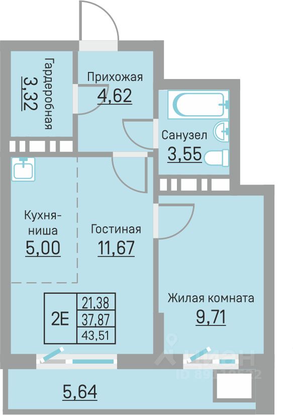 43 м² · Этаж 13 из 16