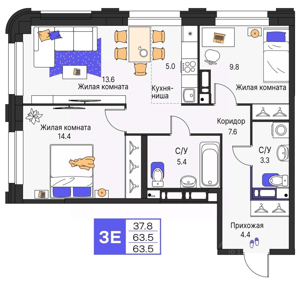 64 м² · Этаж 4 из 4