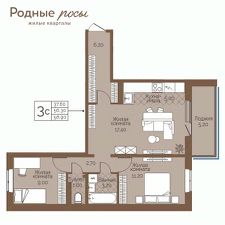 Продаётся 3-комнатная квартира в строящемся доме (Академическая, 9), срок сдачи: III-кв. 2027, общей площадью 67.2 кв.м., на 1 этаже. Новый жилой комплекс ''Родные росы'' от Специализированного застройщика ''Финпроект'' расположен в с. Фролы по ул. Академическая.