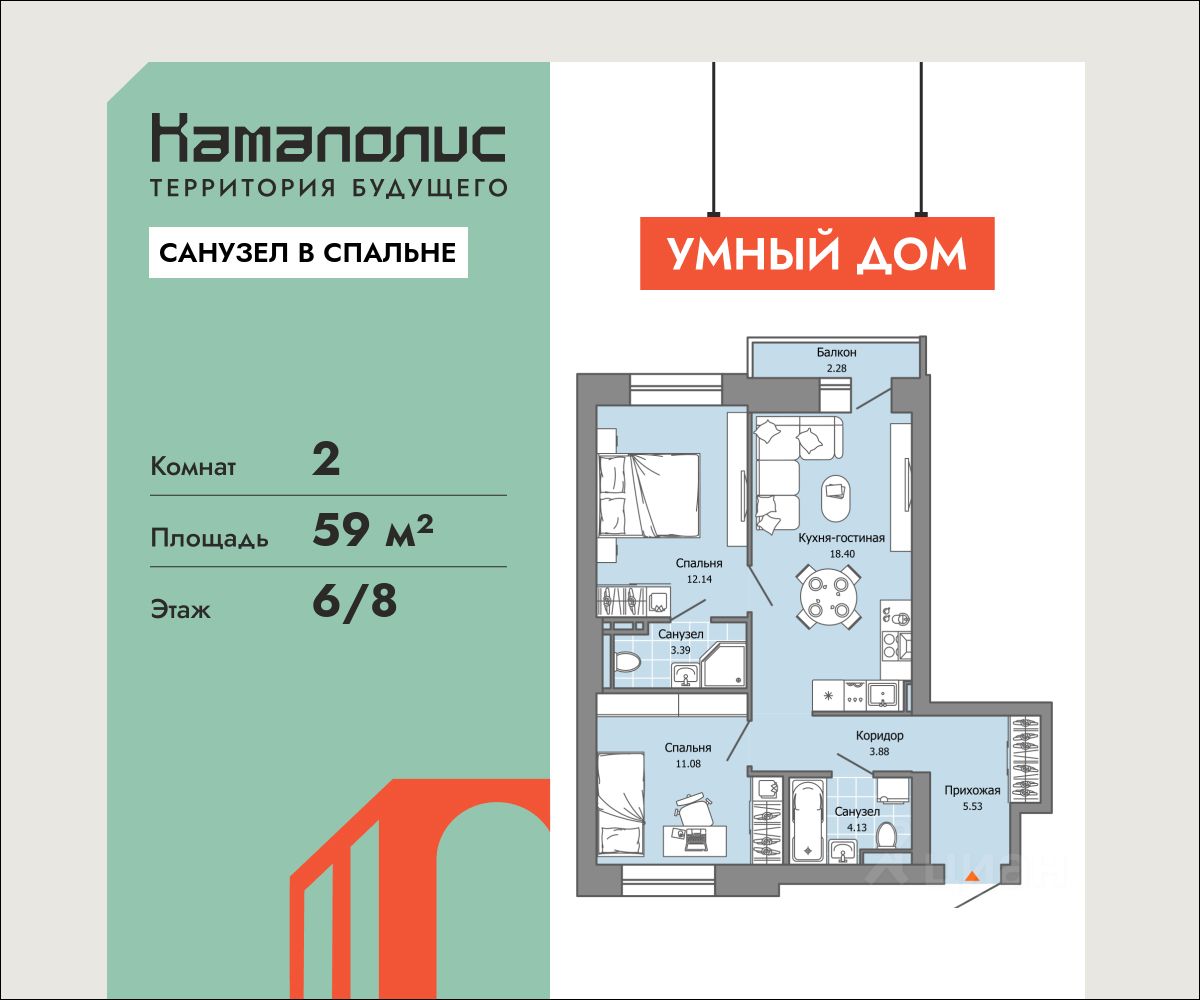 59 м² · Этаж 6 из 8