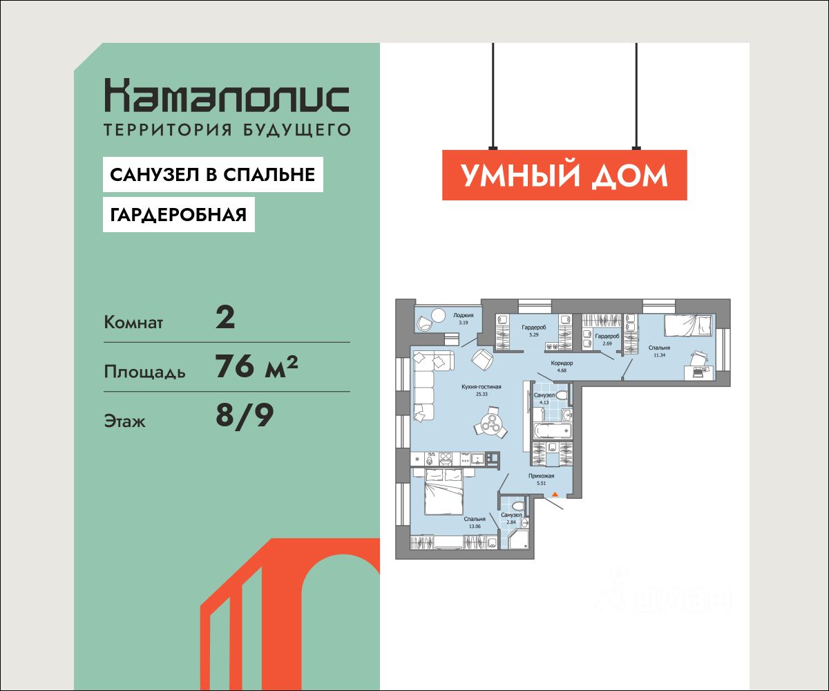 76 м² · Этаж 8 из 9