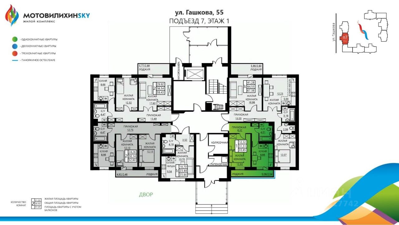Продаётся 1-комнатная квартира в строящемся доме (Гашкова, 55 (позиция 12)), срок сдачи: I-кв. 2027, общей площадью 33.85 кв.м., на 1 этаже. Глобальный проект новостроек на Вышке-2 в Перми стартовал в 2012 году. Общая площадь застраиваемой территории - 21 га, объем строительства - 187 000 квадратных метров. Счастливыми новоселами ЖК ''МотовилихинSKY'' стали около 1 500 семей! Новостройки в Мотовилихинском районе от СтройПанельКомплект порадуют и Вас широким выбором планировок на любой вкус. Достоинства ''МотовилихинSKY'': В шаговой доступности: гимназия 7, кадетский корпус, детский сад 415 (с прикреплением по прописке в ЖК ''МотовилихинSKY''). Новая школа на 1500 мест и детксий сад на 280 мест запланированы к строительству в в ЖК ''МотовилихинSKY''. Остановочный пункт с маршрутами в любой конец города. В самом комплексе уже расположены магазины: Монетка, Семья, НормаН, а также магазины формата ''у дома''. Просторные дворы без машин. Просторные парковки места хватит всем! Собственная котельная под микрорайон. Более 40 вариантов планировочных решений квартиры. Полная строительная отделка без дополнительных вложений ''заезжай-живи''.