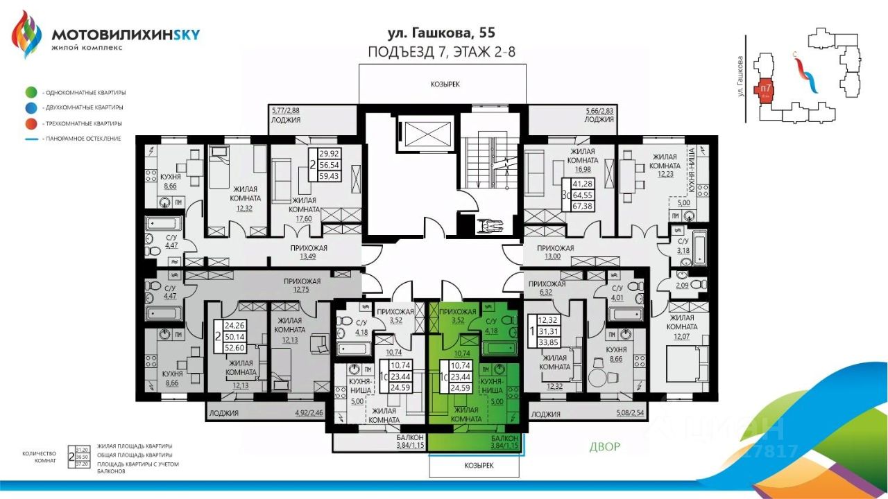 Продаётся 1-комнатная квартира в строящемся доме (Гашкова, 55 (позиция 12)), срок сдачи: I-кв. 2027, общей площадью 23.44 кв.м., на 1 этаже. Глобальный проект новостроек на Вышке-2 в Перми стартовал в 2012 году. Общая площадь застраиваемой территории - 21 га, объем строительства - 187 000 квадратных метров. Счастливыми новоселами ЖК ''МотовилихинSKY'' стали около 1 500 семей! Новостройки в Мотовилихинском районе от СтройПанельКомплект порадуют и Вас широким выбором планировок на любой вкус. Достоинства ''МотовилихинSKY'': В шаговой доступности: гимназия 7, кадетский корпус, детский сад 415 (с прикреплением по прописке в ЖК ''МотовилихинSKY''). Новая школа на 1500 мест и детксий сад на 280 мест запланированы к строительству в в ЖК ''МотовилихинSKY''. Остановочный пункт с маршрутами в любой конец города. В самом комплексе уже расположены магазины: Монетка, Семья, НормаН, а также магазины формата ''у дома''. Просторные дворы без машин. Просторные парковки места хватит всем! Собственная котельная под микрорайон. Более 40 вариантов планировочных решений квартиры. Полная строительная отделка без дополнительных вложений ''заезжай-живи''.