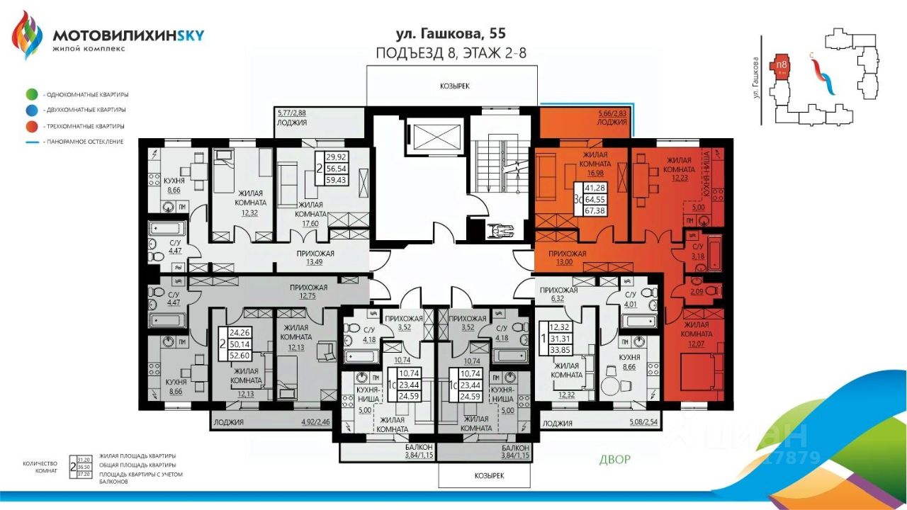 Продаётся 3-комнатная квартира в строящемся доме (Гашкова, 55 (позиция 12)), срок сдачи: I-кв. 2027, общей площадью 67.38 кв.м., на 2 этаже. Глобальный проект новостроек на Вышке-2 в Перми стартовал в 2012 году. Общая площадь застраиваемой территории - 21 га, объем строительства - 187 000 квадратных метров. Счастливыми новоселами ЖК ''МотовилихинSKY'' стали около 1 500 семей! Новостройки в Мотовилихинском районе от СтройПанельКомплект порадуют и Вас широким выбором планировок на любой вкус. Достоинства ''МотовилихинSKY'': В шаговой доступности: гимназия 7, кадетский корпус, детский сад 415 (с прикреплением по прописке в ЖК ''МотовилихинSKY''). Новая школа на 1500 мест и детксий сад на 280 мест запланированы к строительству в в ЖК ''МотовилихинSKY''. Остановочный пункт с маршрутами в любой конец города. В самом комплексе уже расположены магазины: Монетка, Семья, НормаН, а также магазины формата ''у дома''. Просторные дворы без машин. Просторные парковки места хватит всем! Собственная котельная под микрорайон. Более 40 вариантов планировочных решений квартиры. Полная строительная отделка без дополнительных вложений ''заезжай-живи''.