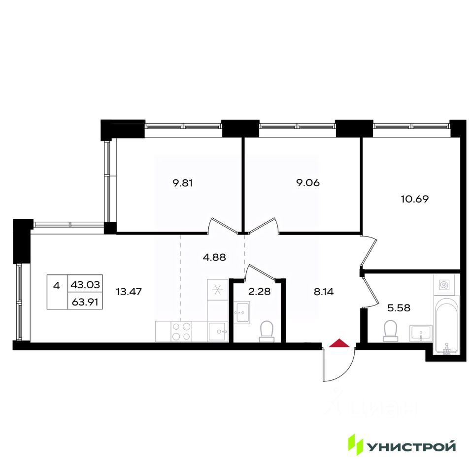 57 м² · Этаж 4 из 4