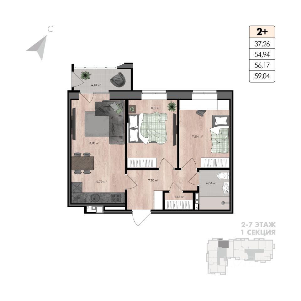 19 / 30 этаж