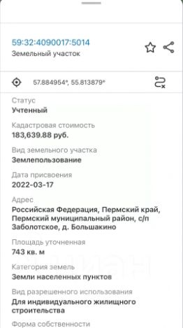 Продаю свой земельный участок - ранее был адрес д. Горшки, улица Полевая, д. 21.Шикарное расположение с точки зрения транспортной доступности и уединения. На участке слышно пение птиц, ночью видны звезды при этом от города можно добраться по не загруженной трассе Пермь-Усть-качка за 35-40 минут.Участок находится в границах населенного пункта Горшки, с двух сторон сельская дорога обслуживаемая Администрацией поселения - зимой чистят в 2 полосы.В деревне есть своя школа, почта, пункты озон и вайлдбериз, ФАП (10 минут пешком от ЗУ). Остановка общественного транспорта и магазин монетка(13 минут пешком от ЗУ). Соседи по улице Полевая проживают постоянно.Дорога до курорта Усть-качка, где в ближайшие 2-3 года построят новый аквапарк, а уже сейчас можно отлично провести время в бассейне, контактном зоопарке и парке отдыха с пляжем на берегу Камы, занимает около 15 минут.На участок уже проведено электричество 3 фазы 15квт от новой трансформаторной подстанции, она расположена в 100-150 метрах от участка, проблем с напряжением не будет даже зимой в -30. В рамках программы газификации по всей деревне будут проведены работы по прокладке газопровода в 2025-2027 годах.Два соседних ЗУ также принадлежат мне, все участки правильной формы примерно 27 на 30 метров, общая площадь всех трех участков 24 сотки, отличный вариант для застройщиков/глэмпинга/банного комплекса. Дорога вдоль участков отсыпана асфальтовой крошкой.Кадастровый номер ЗУ:59:32:0450001:136959:32:0450001:137059:32:0450001:1371Обмен только на деньги, торг в рамках разумного. Все документы готовы к сделке, 1 взрослый собственник.