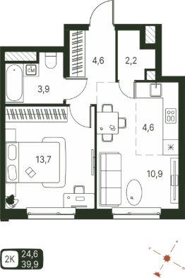 39 м2