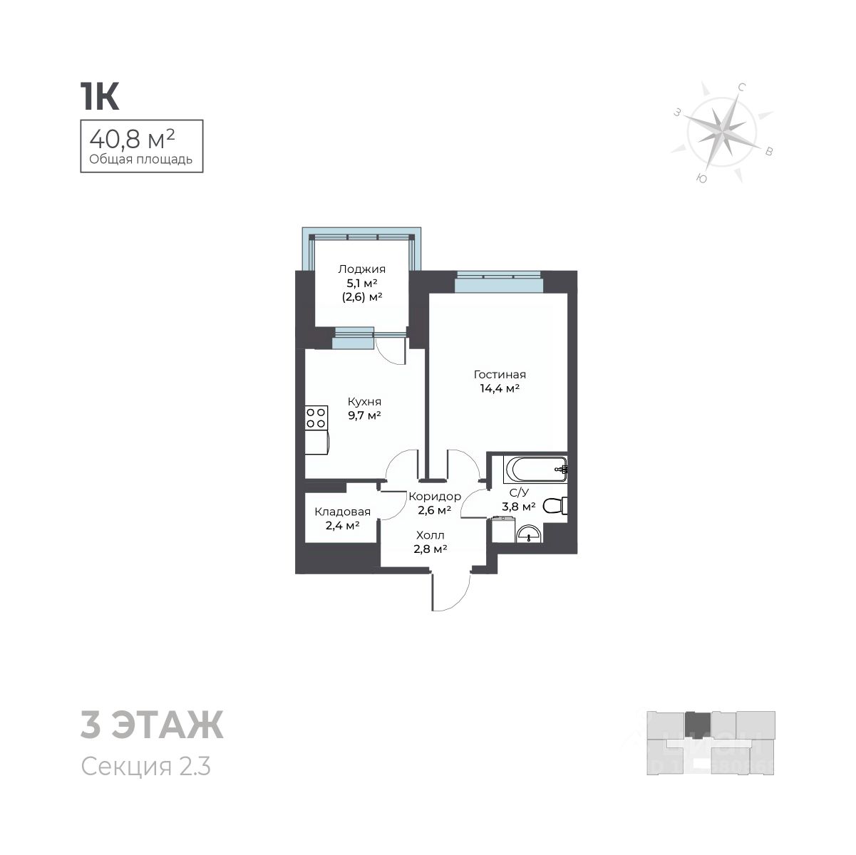 40 м² · Этаж 3 из 6