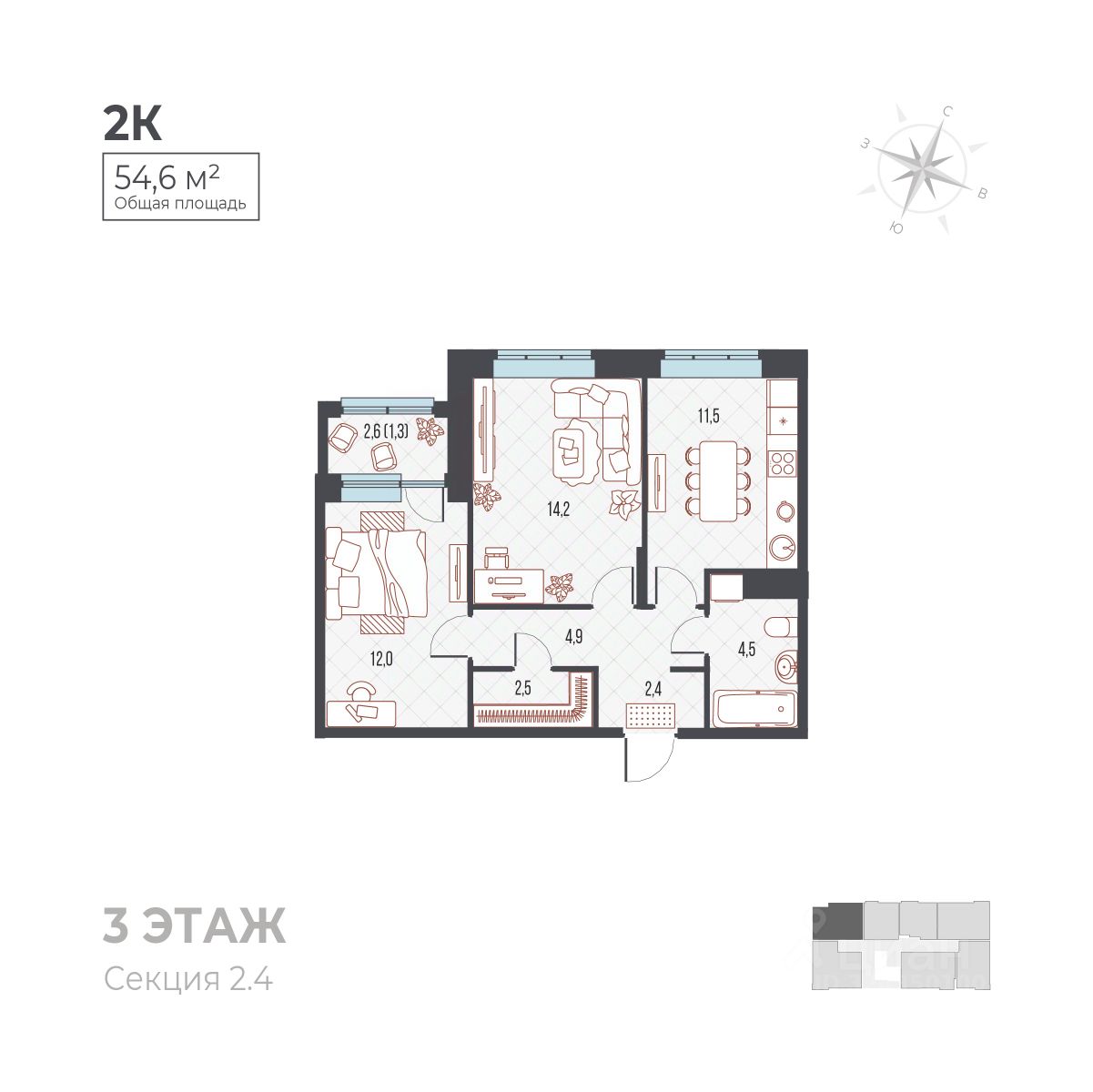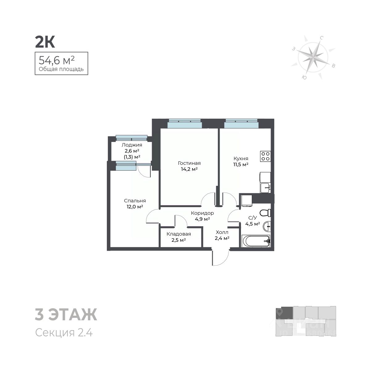 54 м² · Этаж 3 из 6