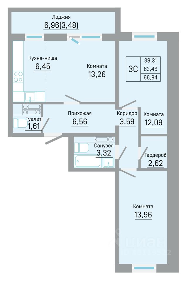 66 м² · Этаж 6 из 9