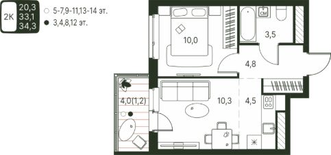 34 м2