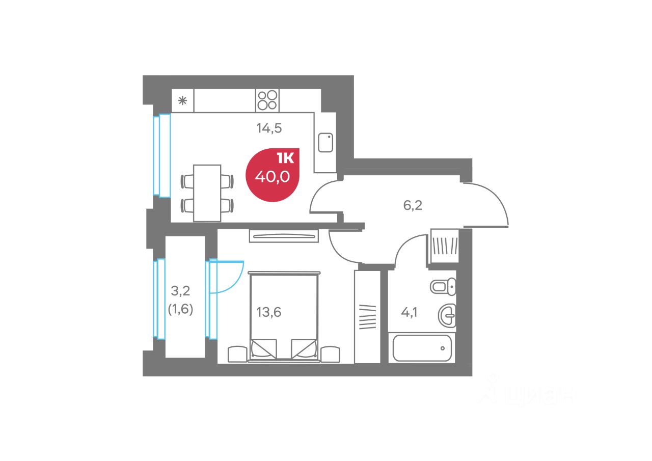 40 м² · Этаж 7 из 9