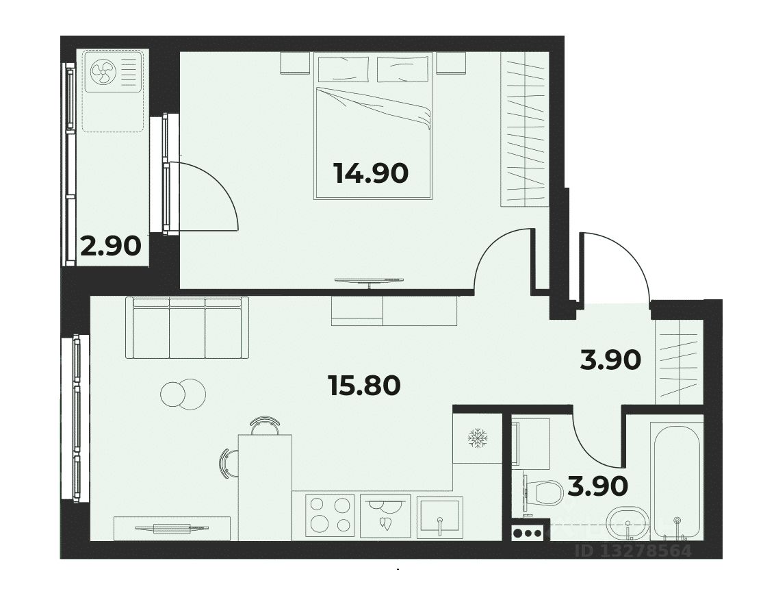 42 м² · Этаж 15 из 28