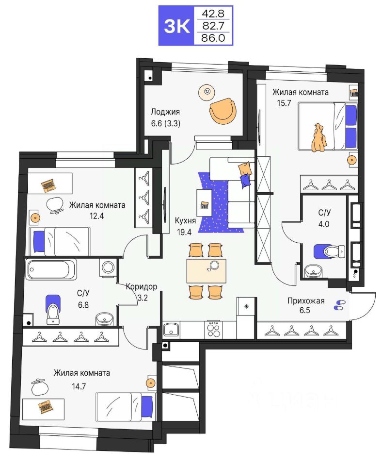 86 м² · Этаж 8 из 25