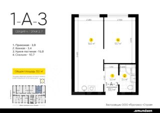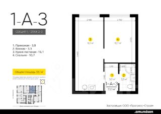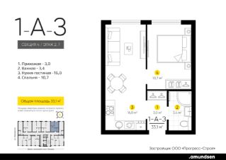 Жилой квартал ''Amundsen'' - для себя, для семьи, для жизни и развития. Авторская концепция проекта эффектно выделяется в 3 особенностях комплекса: фасады, двор и места общего пользования. AMUNDSEN ПРОЕКТ С ХАРАКТЕРОМ ВЕЛИКОГО ПЕРВООТКРЫВАТЕЛЯ. 4 СЕЗОНА: Двор-трансформер позволяет активно использовать все площадки круглый год. В холодное время года санки, коньки и снежные бои за главную башню. В теплое время источник наполняет двор водой и прохладой. Работают площадки для активных игр и спокойного отдыха. 6 ДЕТСКИХ ПЛОЩАДОК:Мы разделили площадки по возрастным группам для малышей и детей постарше. Качели, аттракционы, водные и активные игры созданы, чтобы познавать мир. 5 ПЛОЩАДОК ДЛЯ СПОКОЙНОГО ОТДЫХА:За счет игры с ландшафтом мы создали приватные зоны, украсили пространство разнотравьем, оживили двор источником. Шум воды, лежаки, беседки, парк места, где ты почувствуешь течение жизни. AMUNDSEN ИДЕАЛЬНОЕ МЕСТО ДЛЯ ЖИЗНИ И РАЗВИТИЯ.- Жилой квартал расположен в экологически чистом районе в окружении двух лесных массивов. - Новые современные школы и детские сады. Спортивный кластер для занятий. - Главный холл пространство для всех. Для самых маленьких игры, для взрослых кафе с ярким дизайном, тихий коворкинг, места для отдыха и светлый, просторный атриум. - Детские площадки ''будущего'' с оригинальным подходом к созданию игровой среды. - Безопасная территория. Круглосуточная охрана, видеонаблюдение 24/7, электронная система доступа, двор без машин. Застройщик ООО СЗ ''Прогресс-Строй'', проектная декларация на сайте наш.дом.рф
