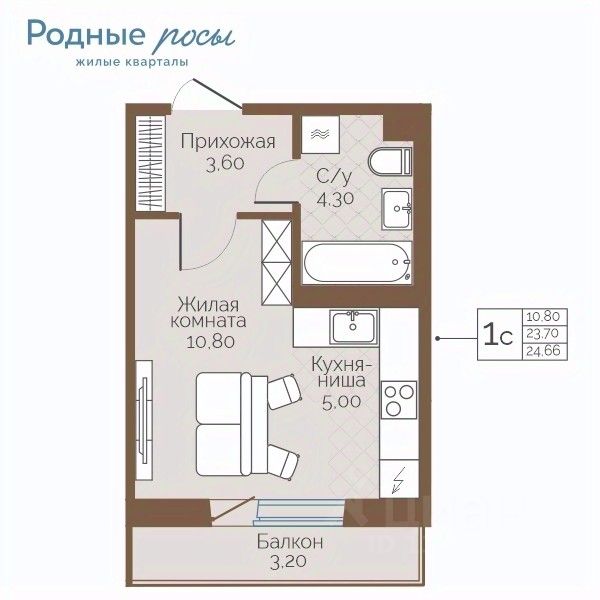 Продаётся 1-комнатная квартира в строящемся доме (Академическая, 9), срок сдачи: III-кв. 2027, общей площадью 24.66 кв.м., на 3 этаже. Новый жилой комплекс ''Родные росы'' от Специализированного застройщика ''Финпроект'' расположен в с. Фролы по ул. Академическая.