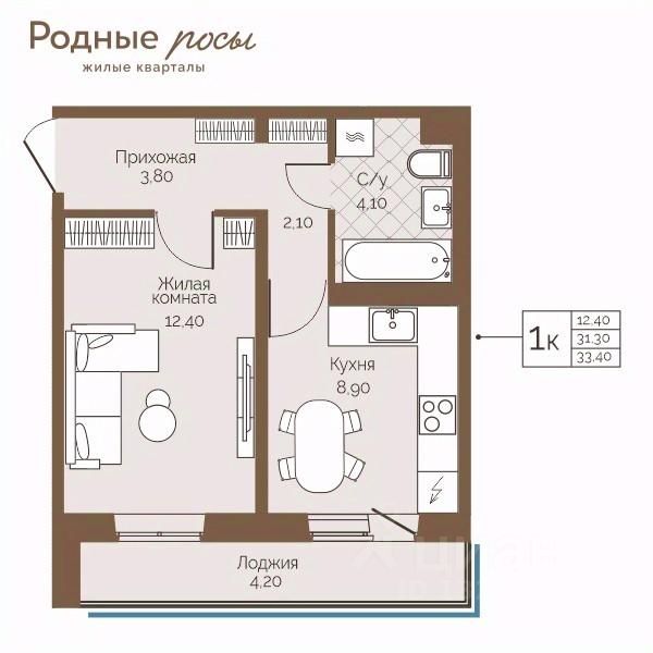 Продаётся 1-комнатная квартира в строящемся доме (Академическая, 9), срок сдачи: III-кв. 2027, общей площадью 33.4 кв.м., на 6 этаже. Новый жилой комплекс ''Родные росы'' от Специализированного застройщика ''Финпроект'' расположен в с. Фролы по ул. Академическая.