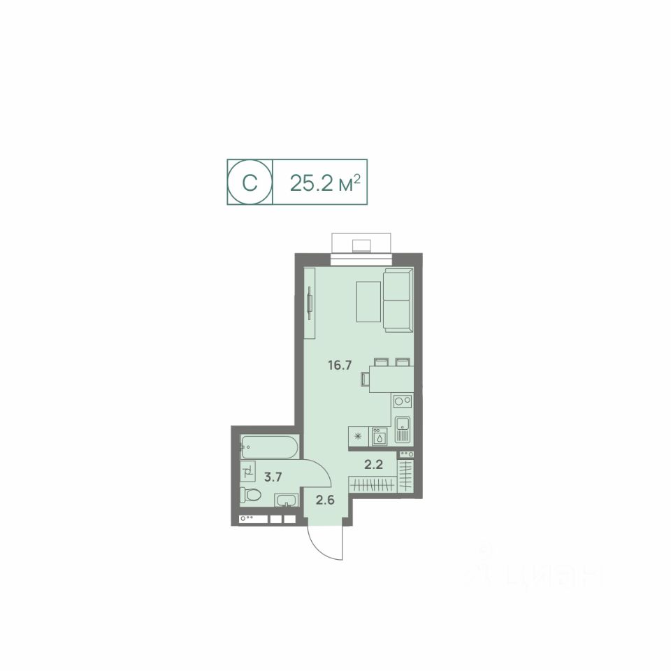 25 м² · Этаж 19 из 25