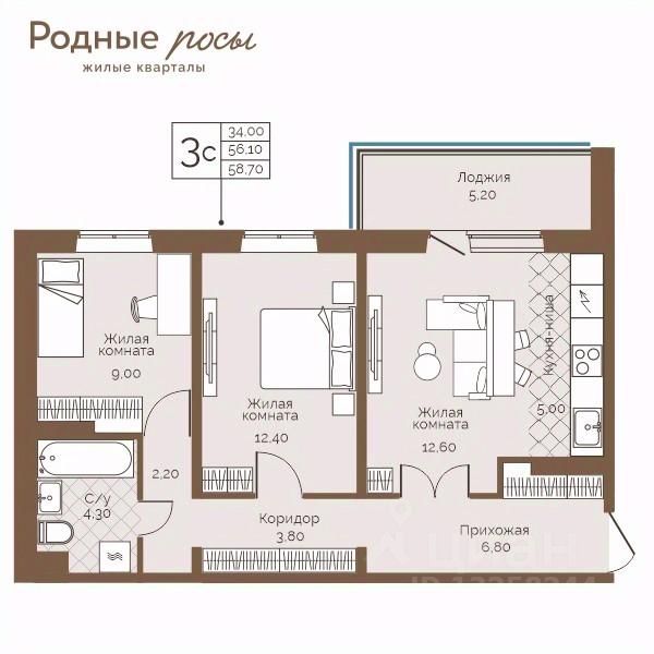 Продаётся 3-комнатная квартира в строящемся доме (Академическая, 9), срок сдачи: III-кв. 2027, общей площадью 67.2 кв.м., на 4 этаже. Новый жилой комплекс ''Родные росы'' от Специализированного застройщика ''Финпроект'' расположен в с. Фролы по ул. Академическая.