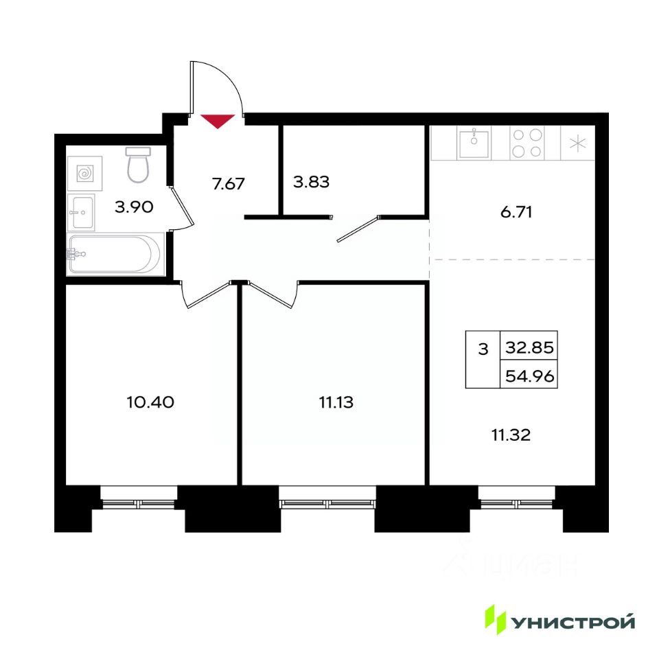 54 м² · Этаж 4 из 25