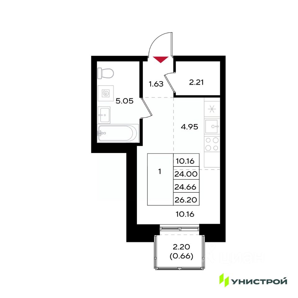 24 м² · Этаж 13 из 25
