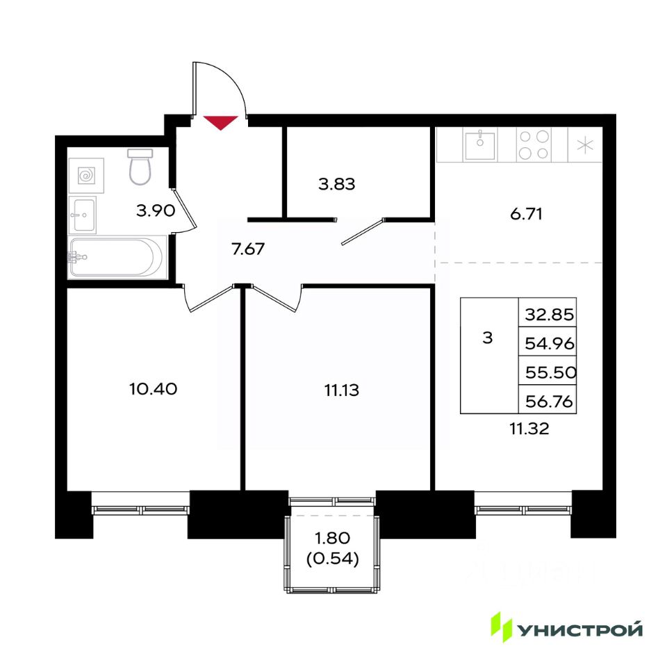 56 м² · Этаж 25 из 25