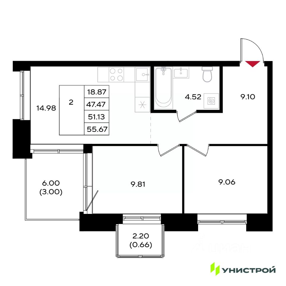 55 м² · Этаж 17 из 25