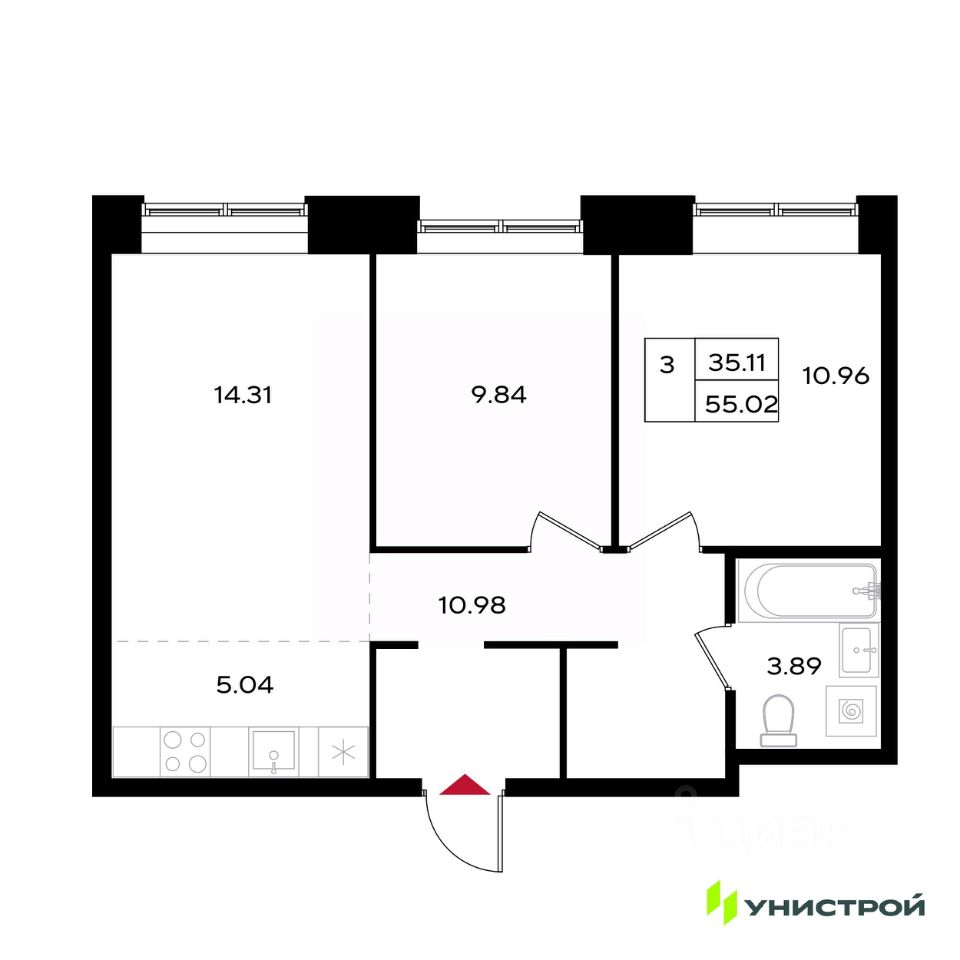 55 м² · Этаж 14 из 25